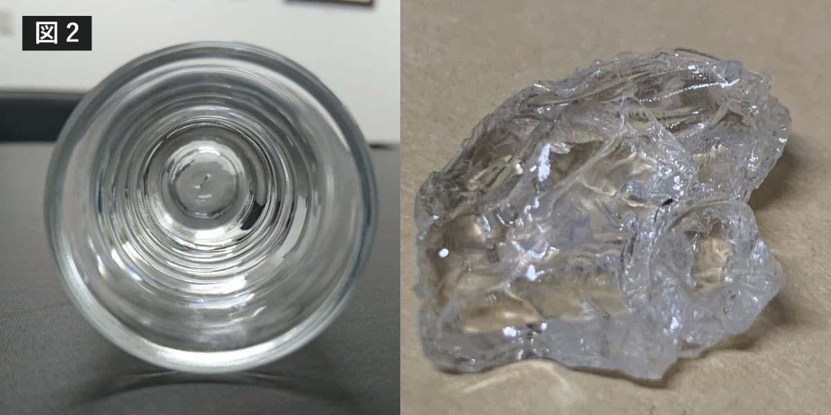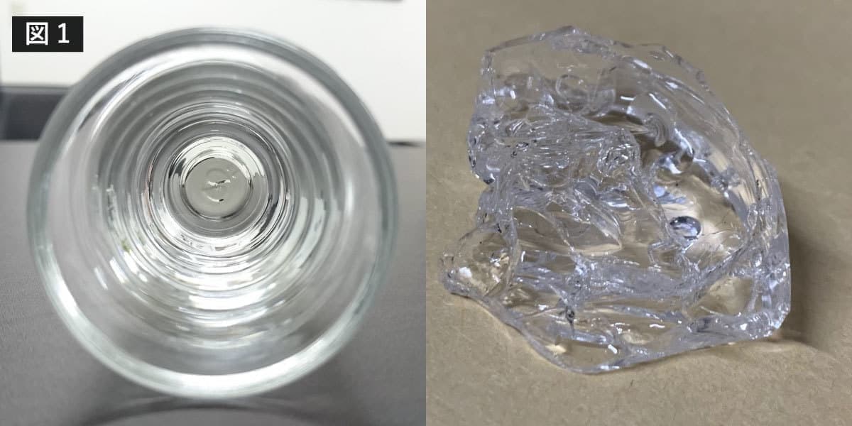 実はほとんどのコーティングはこのように容器に入れて固めても、こんなにハッキリした塊にはなりません。
